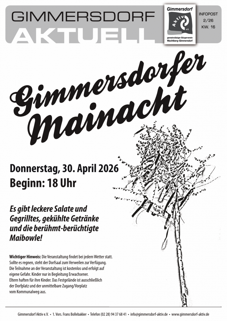 füllte sich der Dorfplatz am späten Nachmittag schnell. Es wurde ein gesunder Hunger und auch einiges an Durst mitgebracht. Sowohl die Gimmersdorfer Maibowle als auch Steaks und Würstchen fanden regen Anklang.